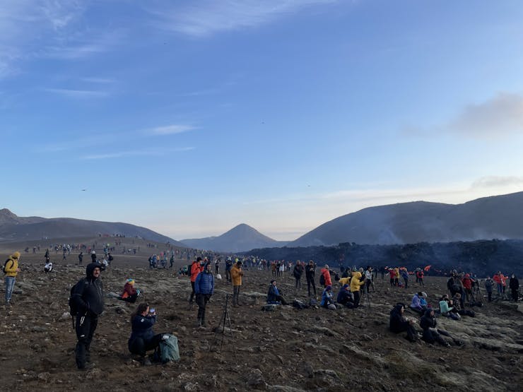 But the day after we arrived, day 7 of the eruption, the site re-opened. Cue around 2,000 visitors, making their way up the mountain, to be met with a heavy ICE-SAR presence monitoring gas levels, and providing guidance and restrictions on where to go.